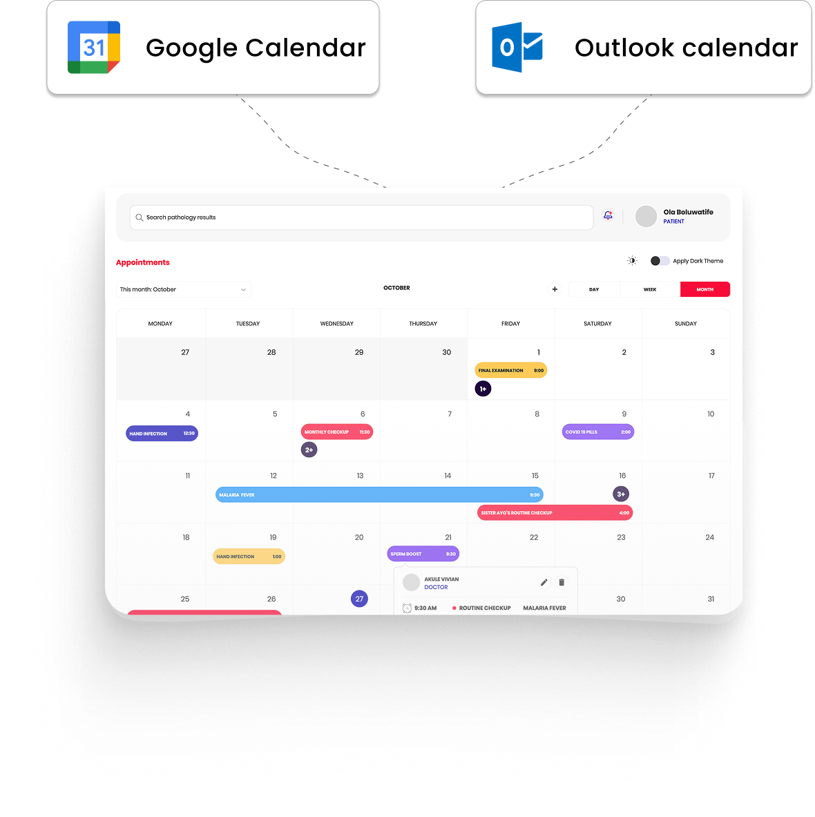 - Unified view for Google & Outlook calendars