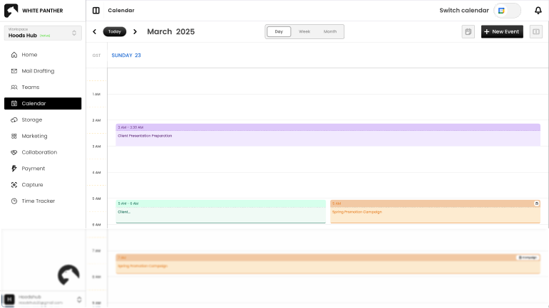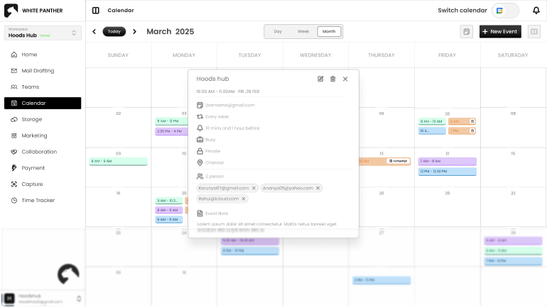 No need to open a separate screen or wait for a pop-up. Just click on the date or the Add New Event button and enter your details right there. It is quick, clean, and distraction free.