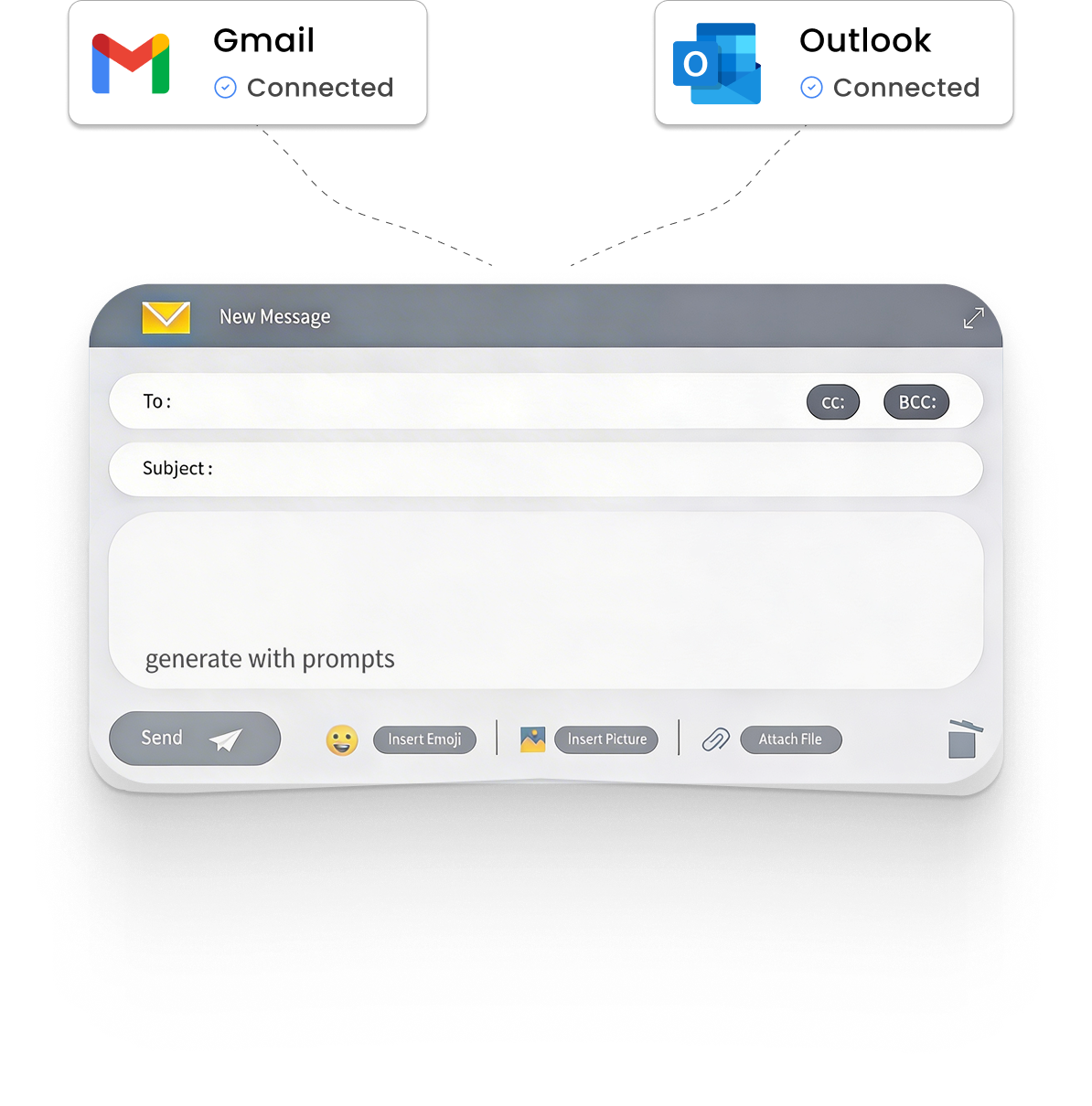 Yes, WhitePanther works seamlessly with both Gmail and Outlook. We connect Gmail and Outlook to one platform. You can draft and manage emails using our AI tools without leaving your WhitePanther dashboard. Everything stays synced with your existing account, so you don’t need to switch platforms.
