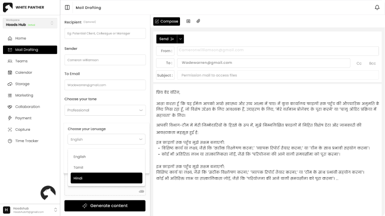 Communicate confidently across regions and teams. Draft emails in different languages while maintaining clarity, professionalism, and consistent messaging across global conversations.