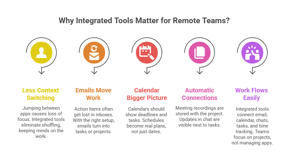 Remote work isn’t going anywhere, but scattered workflows should. The right remote team productivity software isn’t about shiny features. it’s about building an environment where email, calendar, chats, meetings, tasks, and time tracking actually work together.